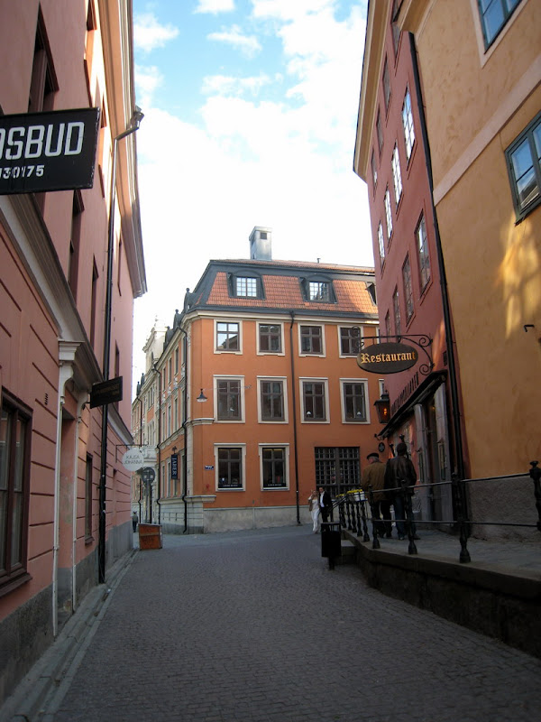 One of the many cobblestoned streets in downtown Uppsala.