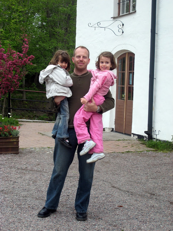 Jake with his nieces, Evelyn and Elisa outside at Ulva Kvarn.