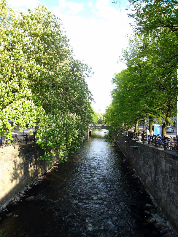 Fyrisån River running through downtown Uppsala.