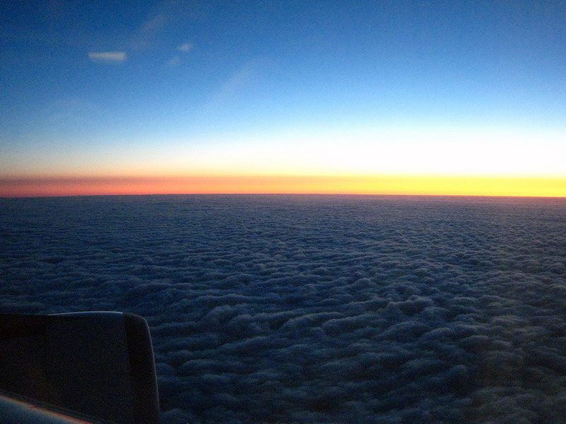 Sunrise over Paris just before we land.