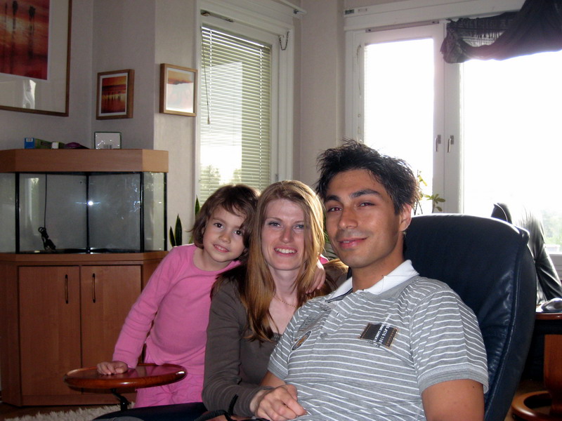 One of the many moving kilometre long sidewalks at Paris CDG airport.And then we took another plane to Stockholm. Here is Jake's sister Kasia, her partner Ocean and their older daughter, Evelyn.