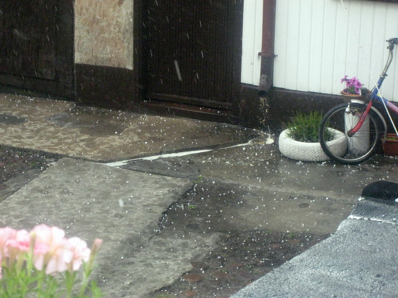 Brief hailstorm while we were visiting Jagoda. The hail was chick-pea sized.