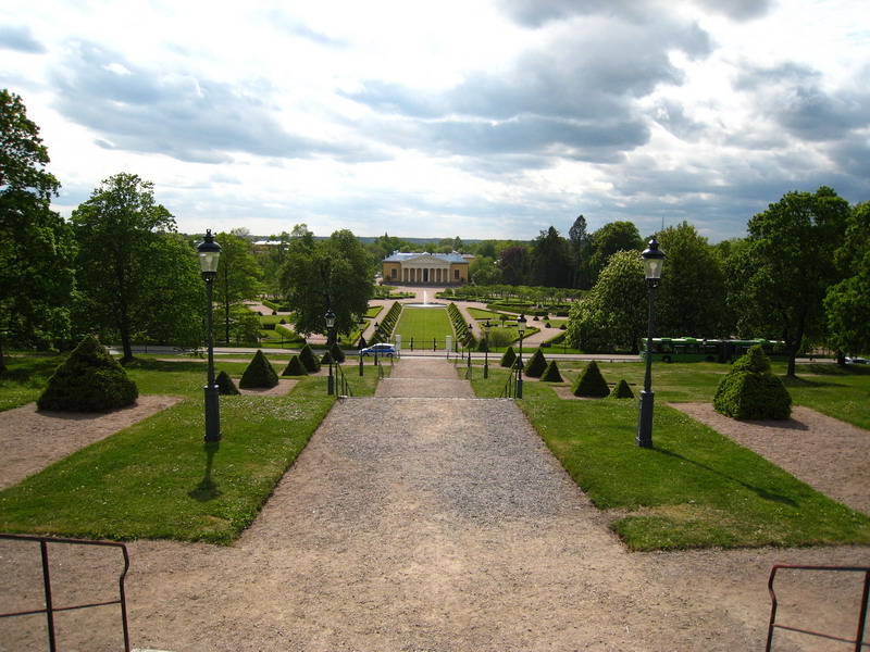 View of the formal part of the Gardens and Orangery in the background. This is taken from the steps of the castle that sits at the top of the hill.